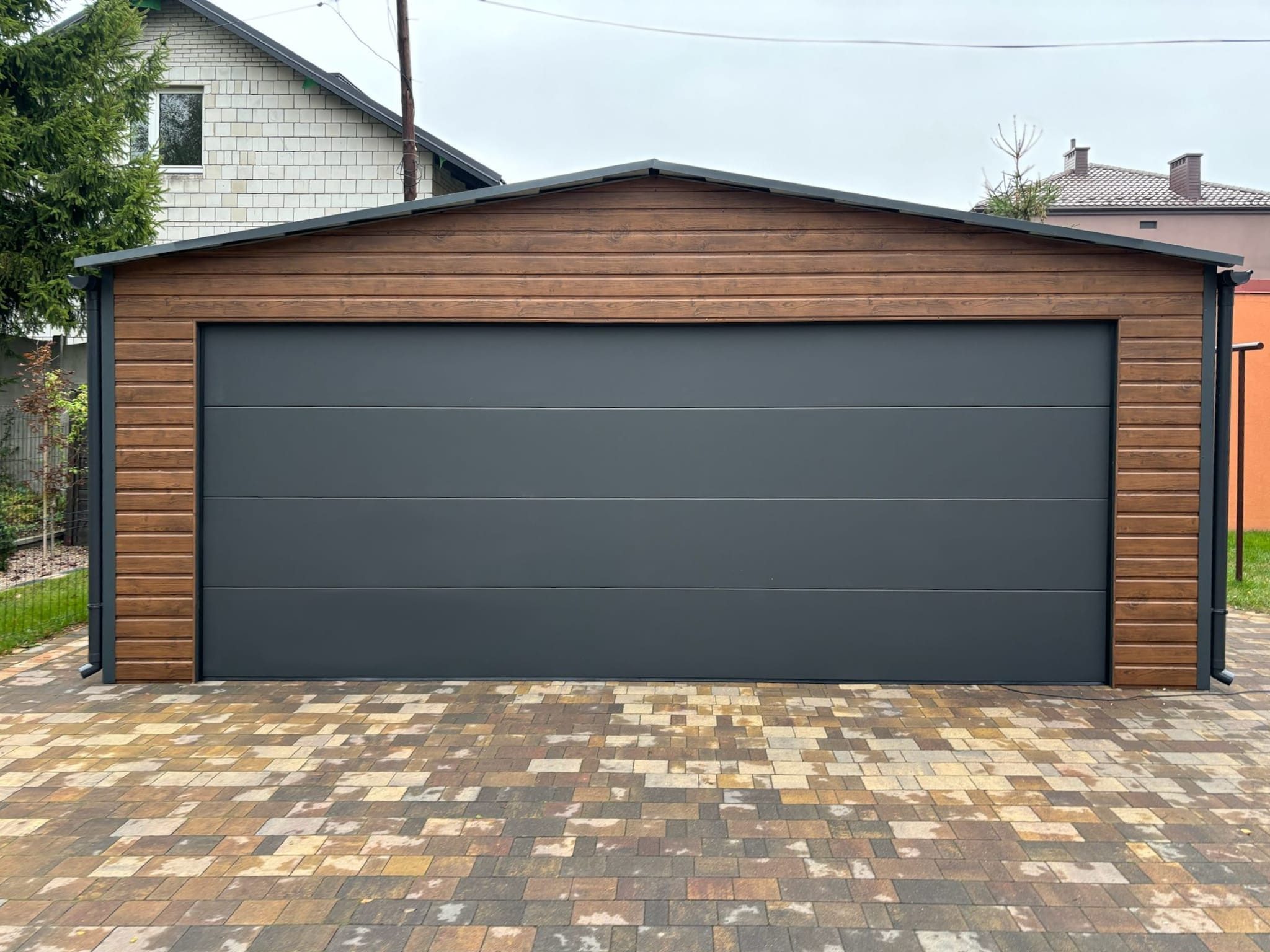 Specyfikacja: -całość konstrukcji zamknięty profil ocynkowany -brama segmentowa 5m x 2m z automatyką -drzwi serwisowe -dach pokryty blachodachówką + blacha trapezowa z filcem antyskropleniowym -obróbki blacharskie Ceny wliczają montaż, transport oraz kotwiczenie na terenie całego kraju, garaż…