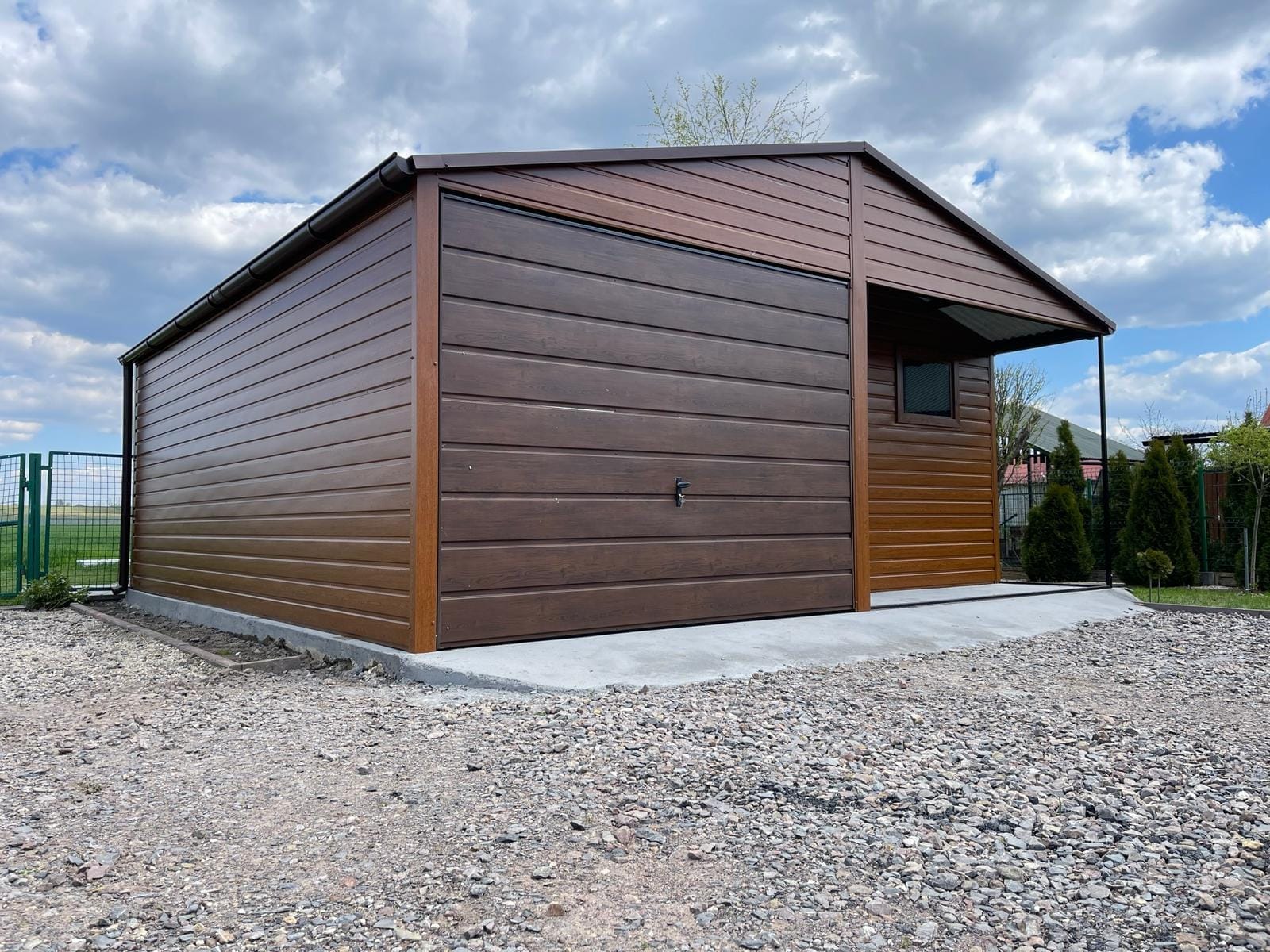 Specyfikacja: -całość konstrukcji zamknięty profil ocynkowany -1x brama uchylna (276 x 190) -drzwi serwisowe -1x okno PCV -dach pokryty blachą trapezową z filcem antykskropleniowym -obróbki blacharskie Ceny wliczają montaż, transport oraz kotwiczenie na terenie całego kraju, garaż możesz skonfigurować dowolnie oraz rozszerzyć o dodatki: -automaty do bram uchylnych -konstrukcje pod ocieplenie – zapytaj doradcy -blachodachówkę -orynnowanie -dodatkowe otwory, drzwi lub okna
