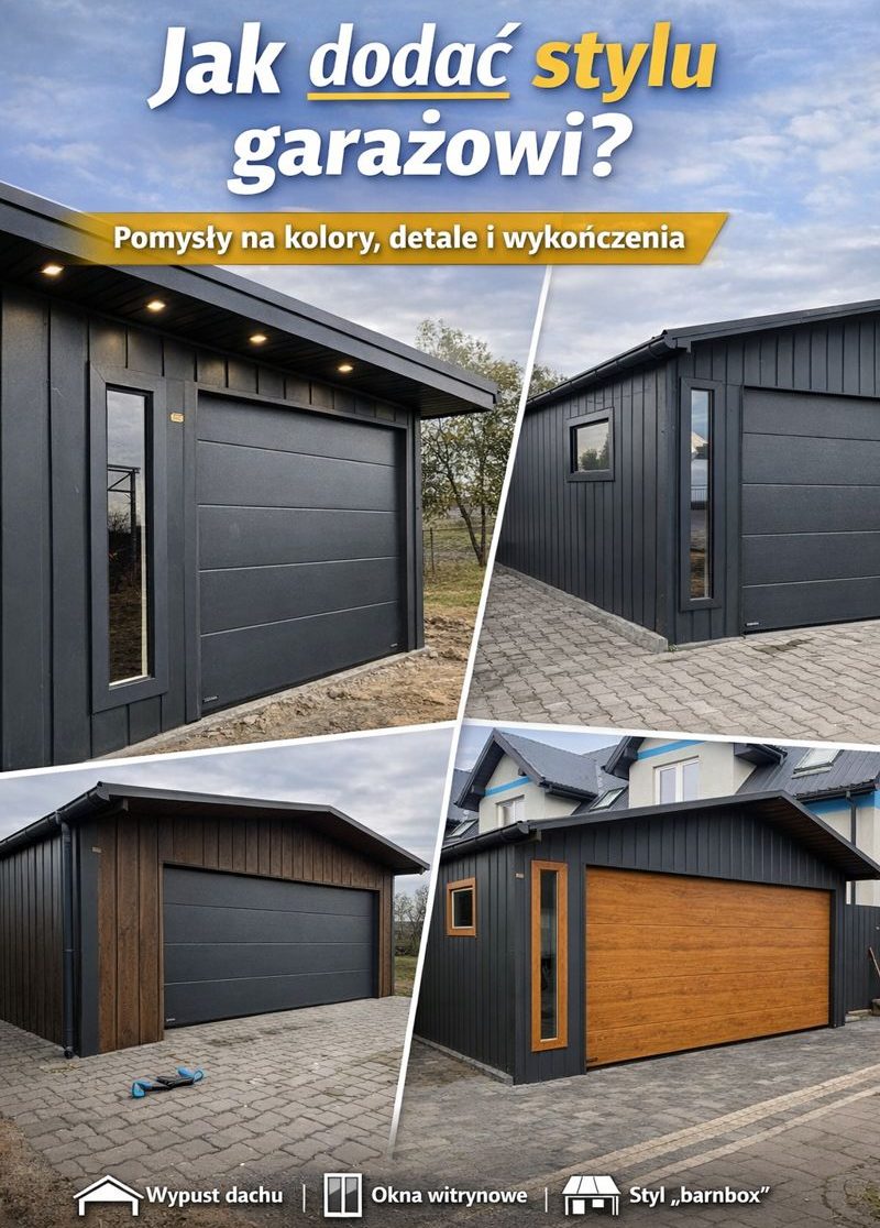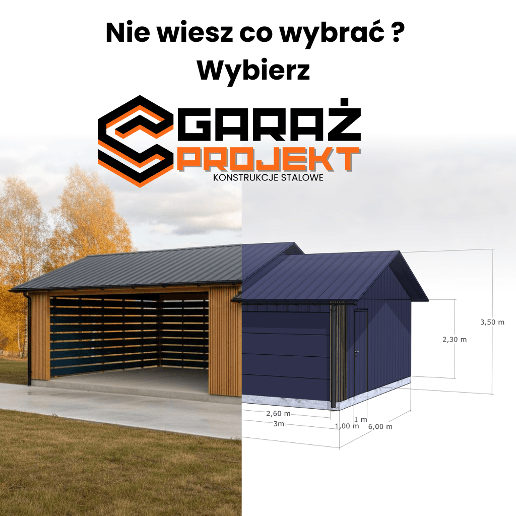 Specyfikacja -całość konstrukcji zamknięty profil ocynkowany -ściany pokryte deską naturalną półbal w kolorze Tikkurilla -2x brama uchylna (276 x 190) -1x drzwi -wiata o szer. 3m -dach pokryty blachą trapezową w kolorze RAL7016 + filc antyskropleniowy Ceny wliczają montaż, transport oraz kotwiczenie na terenie całego kraju, garaż możesz skonfigurować dowolnie oraz rozszerzyć o dodatki: -automaty do bram uchylnych -konstrukcje pod ocieplenie – zapytaj doradcy -blachodachówkę -orynnowanie -dodatkowe otwory, drzwi lub okna