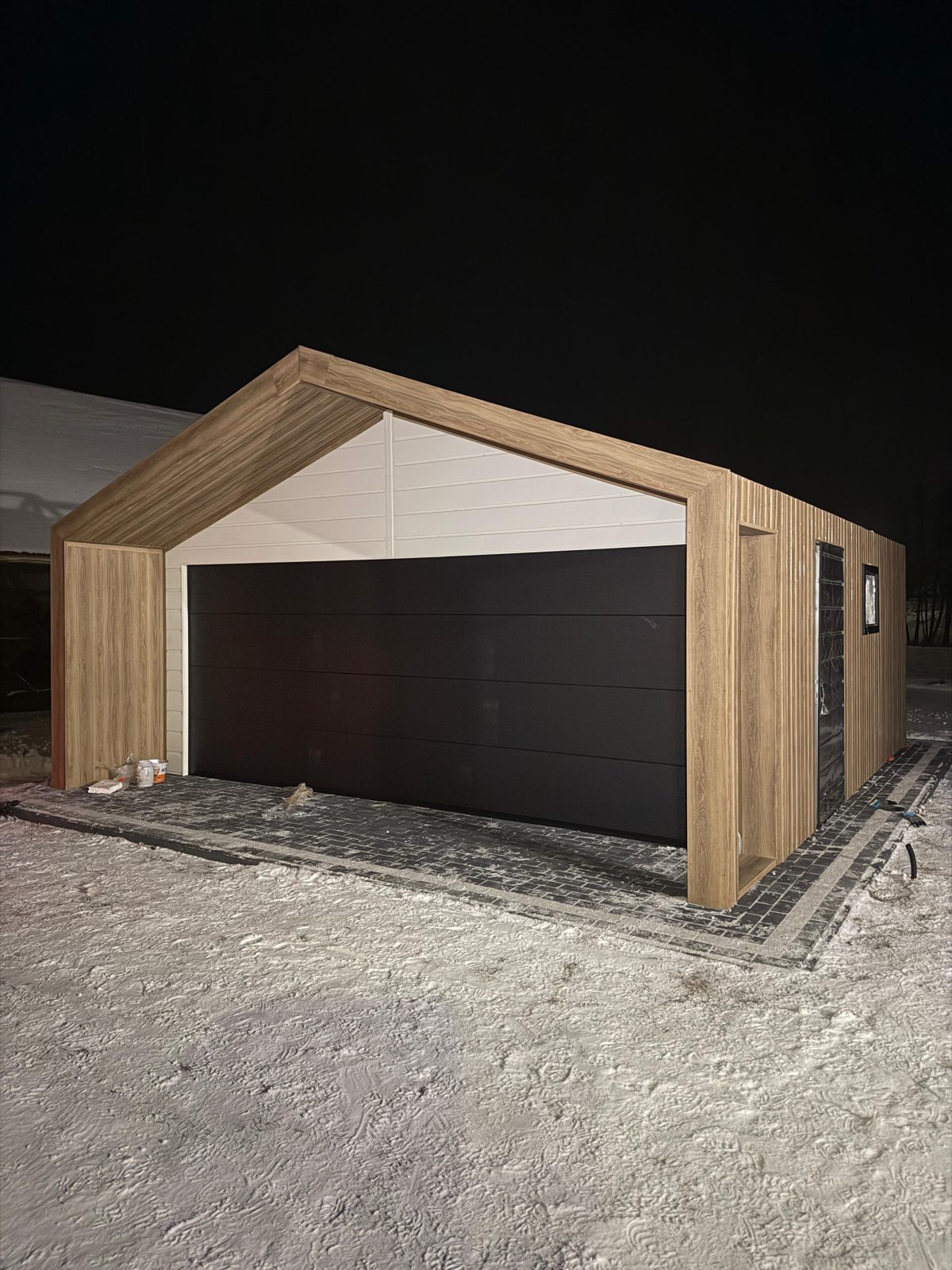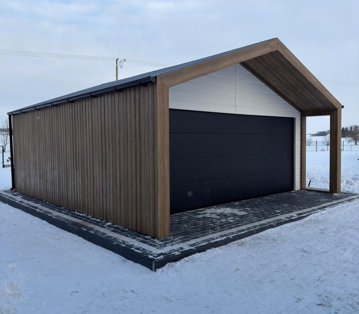 - Brama: 1 × brama segmentowa 5,00 m × 2 m z automatyką, kolor RAL9005 Czarny MAT