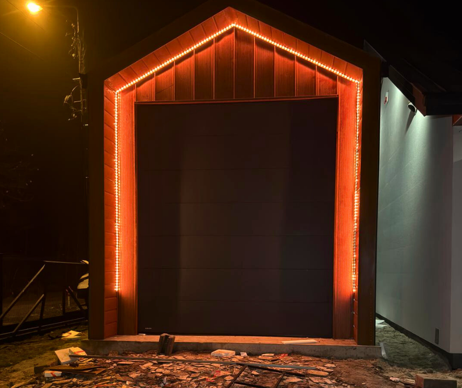 - Oświetlenie: LED na froncie garażu (pod wypustem dachu)