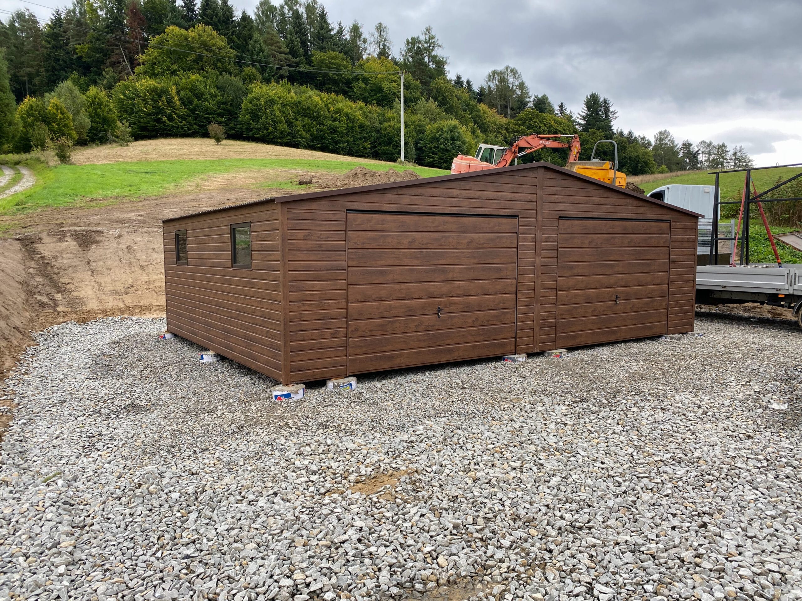Garaż 8m x 6m wys. ściany bocznej 2.70m, wys. do szczytu 3.50m Dla tych, którzy cenią design, trwałość i porządek wokół domu. Specyfikacja: -całość konstrukcji zamknięty profil ocynkowany -2x brama segmentowa 3m x 2.40m z automatyką -drzwi serwisowe -2x okno PCV 80 x 60 uchylne -dach pokryty blachodachówką + blacha trapezowa z filcem antyskropleniowym -wypust […]