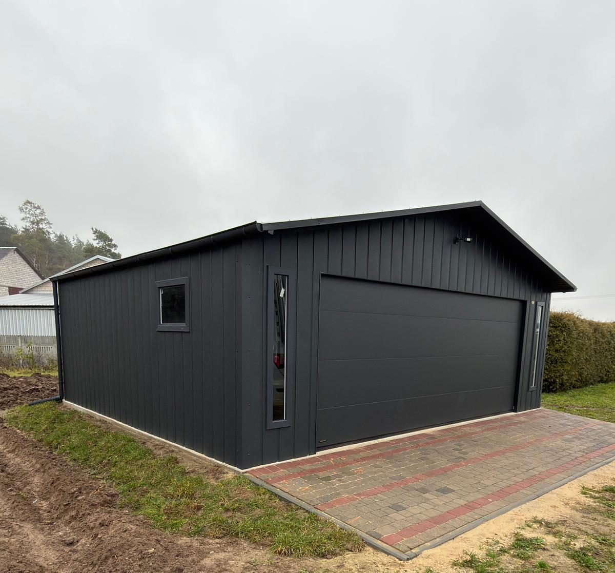 Nowoczesny garaż 6×5.80m wykonany z blachy na rąbek stojący w kolorze grafitowym RAL 7016. Mocna konstrukcja stalowa, wysoka estetyka i pełna personalizacja. Idealny na samochód lub przestrzeń warsztatową. Dostępny z bramą segmentową, drzwiami bocznymi, rynnami Projektowany i montowany przez Garaż Projekt. Specyfikacja: -wymiary Garaż 6m x 5.80, wys. z przodu 2.60m, wys. z tyłu 2.30m […]